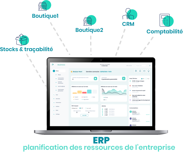ERP centralisant la gestion commerciale, financière et opérationnelle.